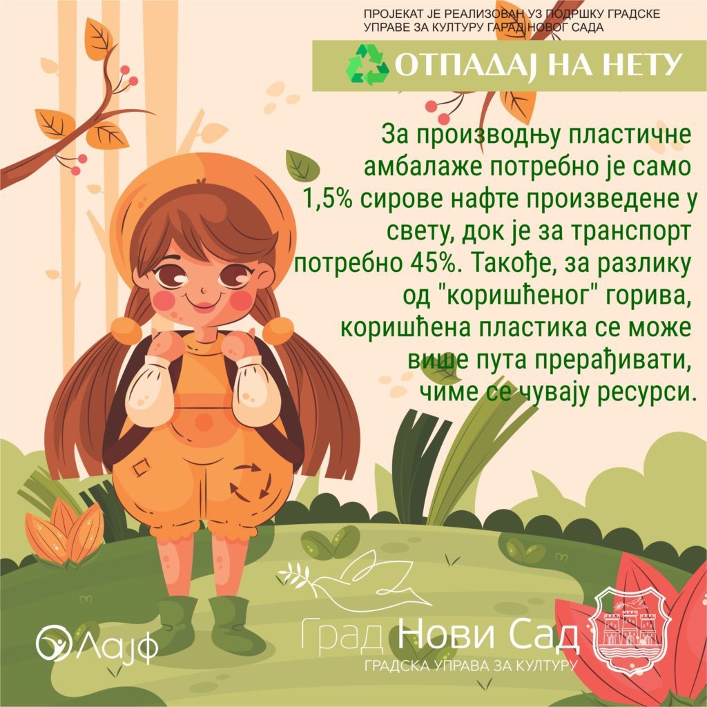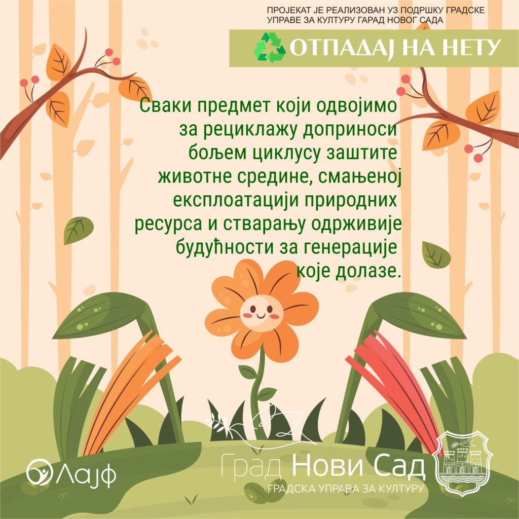 У данашње време постоји прекомеран број депонија, контролисаних и дивљих, људи бацају превише смећа, не размишљају о поновној употреби амбалаже, о рециклирању… Овим пројектом, који је намење пре свега младима који много времена проводе на друштвеним мрежама и интернету, желимо да постигнемо подизање свести о правилном поступању са отпадом како бисмо очували нашу животну средину и смањили број депонија, нарочито оних дивљих.
