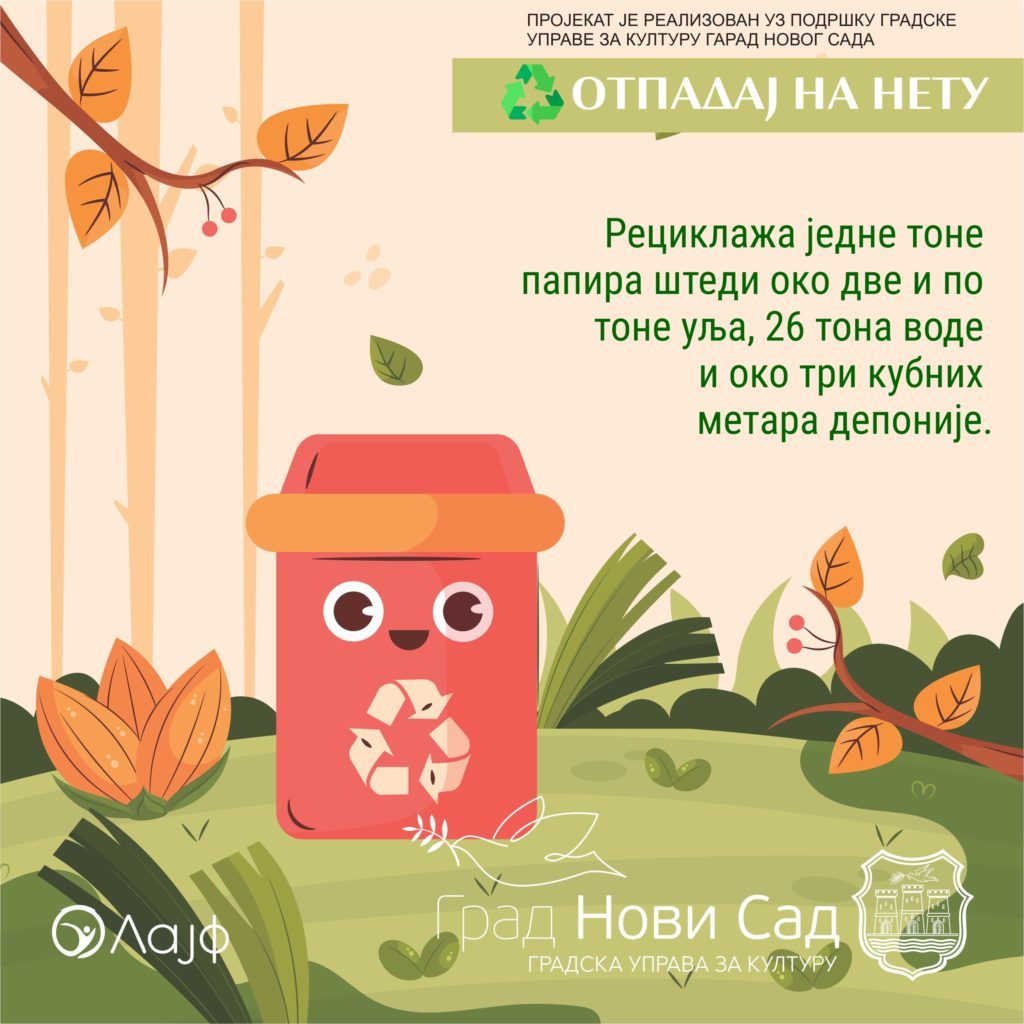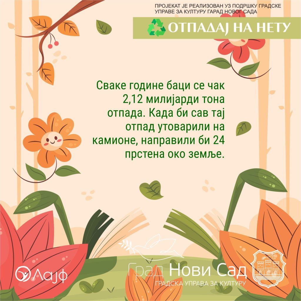Пројекат „Отпад-ај на нету!“ се бави темом отпада тј. поступањем са отпадом. Ово је наставак прошлогодишњег пројекта удружења Лајф под истим именом, с обзиром да је прошлогодишњи пројекат био веома успешан.